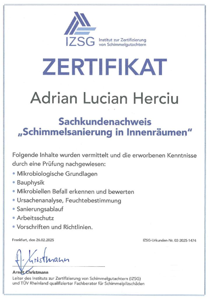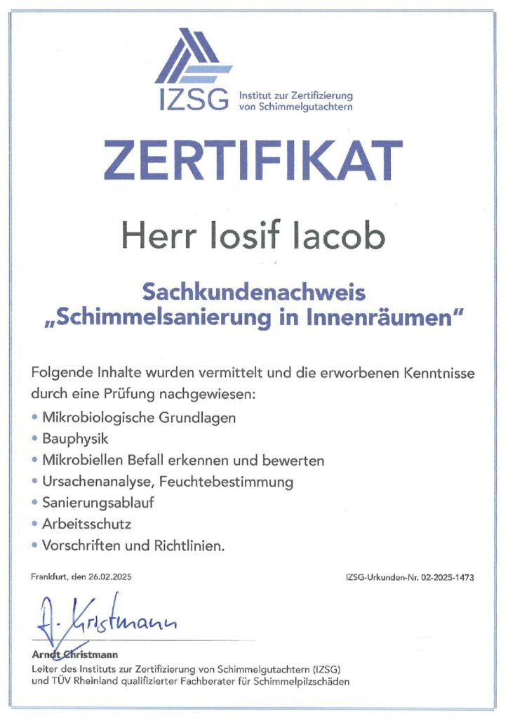 Unsere Schimmelbehandlungen erfolgen kompetent und budgettreu.